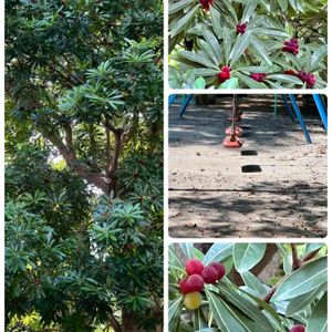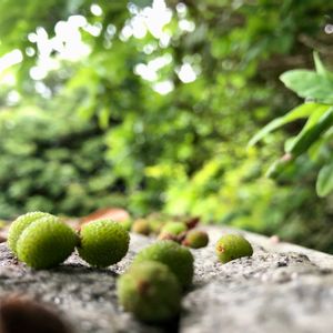 親戚宅の大きなヤマモモの木🌳 緑色の若い実がたくさん落ちていました💚 真っ赤に熟したらジャムにするそうです❤️💕