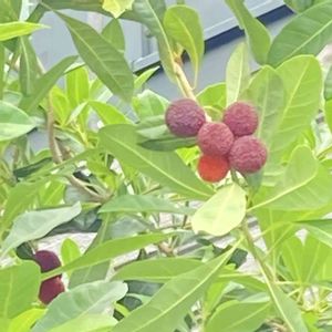「ヤマモモ」 毎日沢山の実が収穫🍑 この時期になると早朝収穫するのが日課です。 ジャムやジュースにと忙しい悲鳴😭 やはり木から採りながら完熟の実を食べるのが一番美味しいです😋(*^^*)