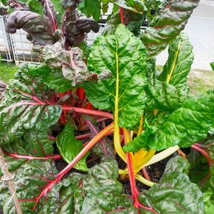 移植したスイスチャード こんなに元気❣️ こんなに綺麗❣️ 見てるだけで楽しい〜❤️ 色んなお色あるね🎵