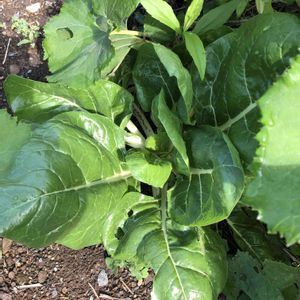不断草、零れ種から。 同じ親からの不断草、もう董立ちして花を付けて居るものも有り。しかし、この子は、春の初めに芽を出し、今、若葉です。 野菜が高いから、助かります。 外側から3.4枚を今日お昼のおみおつけにするかなぁ!
