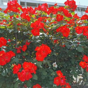 今朝の🌹さん 『オデュッセイア』🌹 地植えのオデュちゃん 沢山咲いてます️️♥️ 先日の風で 下の方の枝が折れて ( ºΔº 〣)✷✸ 🏷 真っ赤な火曜日 🏷 あっ火曜日