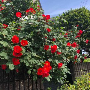 本日のバラは、アーチの片側、開いてきたルージュピエールドゥロンサール❤️ こちらも去年の初夏、新苗だったものが、そこそこ大きくなりました😊 もう片側は定番ピンクのピエールさん。 あともう少し。