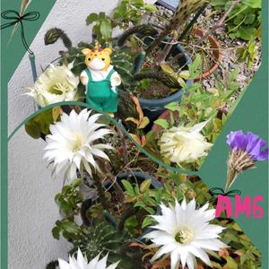おはようございます🍀 今朝は雨☔️ 昨日は、沖縄より早く、九州の梅雨入りが発表されました‼️ 1枚目は、鉢植えの短毛丸。一昨日は蕾。昨日の朝は綺麗に3個咲いていましたが、午後4時には萎んでしまいました😅サボテンによって何度も閉じたり開いたりする子もいるのに、この子は、儚い一日です❣️ まだまだ蕾をつけていますが、今年は、いくつ楽しませてくれるのでしょうか?楽しみです💕 2枚目は、クミピさんからのサブライズ🎁 可愛いマスコット人形やムーミンハウスの携帯置き、キツネさんの鉢、折り紙、ナデシコの種、感謝のトイレットペーパー、美味しそうなお菓子等々。 横浜と鎌倉のお土産がいっぱい🤩 ありがとうございました💕 3枚目は、まりぽけさんからのサプライズ🎁 「モアイのボールペン送るから~」 そう思っていたら、箱が届き、猫のお皿やキーホルダーに🐸さんの置物、美味しそうなお菓子やお蕎麦等々🤩 ありがとうございました💕 🏷️毎月16日はモアイの日 🏷️一日遅れてめんごめんご お天気悪いですが、気分はHAPPY!😃🎶💖 今日も宜しくお願いします🌿