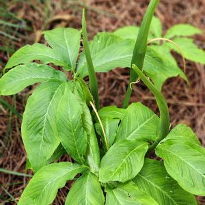 カラスビシャクに似た葉に見えます。 最初はムサシアブミの葉?と思いましたが、蕾が違います。 何の花でしょうか⁉️ 2023.5.20 東邦大学薬学部薬草園にて 今日のお花カラスビシャクと教えていただきました。