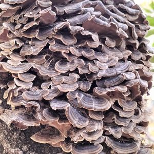 切り株にきのこ🍄 薔薇の様になったベニカナメのきのこ 綺麗です カワラタケって言うそうです
