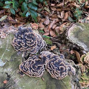 カワラタケ🪵 お花みたい🌼🎶 かなりインパクトのある見た目👀💦 薬効があり、お薬の原料になるそうな😲