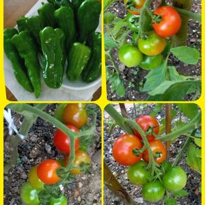 今晩はー。 午前中は晴れたり曇ったり😫 むし暑かったわ😨 万願寺唐辛子三本 ピーマン五個 昨年は🍅日照不足でボタボタ落ちてしまいました💦 ピーマンはうまく行けば10月半ば頃前で収穫できます。 今、涼しいです☺️