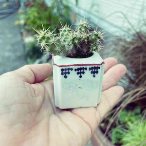 種から育てたサボテン7年目 これは正真正銘のサボテン盆栽と言っても良いでしょう🙆 デッドストックの爪楊枝入れに穴を開けた鉢です