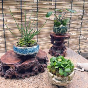 エアプランツを入れていた鉢と同じシリーズこちらは野いちご植えてあります、意外と背中に穴空いてても平気みたいです 理想はもっと苔むしてほしいかな これは七輪陶芸で焼いた朱泥鉢です