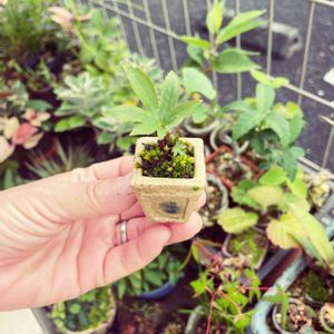 大宮盆栽祭りで購入したまゆみなんだけど幹まで苔むしはじめた 狭いから集めて置きすぎなんだろうな 今日は鉢に絵付けします