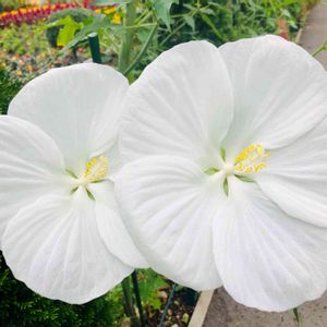 アメリカフヨウかな? 大きいお花が寄り添って咲いていました❗️ 白くてキレイ✨✨ 真ん中が赤いイメージだったけど 純白もあるんですね⁉️