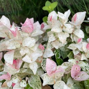 ♡おはようございます^ ^ 💖🤍💚ハツユキカズラ💚🤍💖 葉っぱの色合いが可愛い初雪カズラさん 優しいフンワリした感じが好きです❣️ 花言葉…化粧 …素敵になって …心の灯 🏷️8日は葉っぱの発表会 参加させて下さいね 🏷️人に優しく 🏷️がんに負けるな! 今日も祈ります🙏 朝散歩にて 7月末撮影