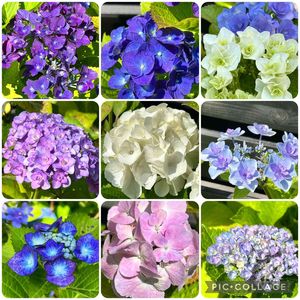雨が止んだので 庭の紫陽花巡り 我が家の紫陽花あつめてみました まだ後3株ほどこれ植え替えの時切り過ぎて花芽迄切ったのか今年はお花有りません😅