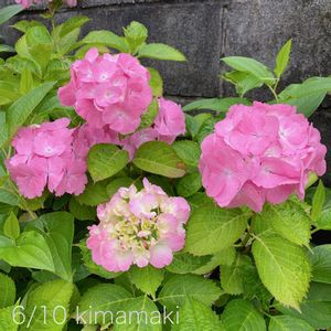 玄関前で咲いている紫陽花たち💙💜🩷