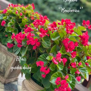 こんにちは~(∩´∀`∩)💕 晴れて暑くなって来ました☀️ 本日2枚目の投稿picは、タキイ種苗さんの八重咲きベゴニア ‘’ボンボリーナ‘’。 昨年は、7月20日に載せている他、冬に室内で育てている写真もあります。 (過去に載せた我が家の八重咲きベゴニアは、タグの ‘’エルフィン家の八重咲きベゴニア‘’から見れます) 室内含めてほぼ1年中咲いている八重咲きのベゴニアです。近くで見ると薔薇のような可愛い花。花が終わると自分で勝手に落ちるので、花殻摘みが要らない手間いらず。3年目の株?だったと思いますが、昨年よりギッシリ咲いていて、そろそろ根詰まりするかな?なんて思っています。 2鉢になっているのは、冬に間延びしたりして思い切り切り戻して、ちょっと枯れたかな?って思っていた所に苗を店頭見つけてしまって、迎えてしまったので、2鉢になってしまったと言うのが事実です( ˊᵕˋ ;)💦 奥に見える白い花の は崖に元々植わっていたヤマボウシ。今が満開で真っ白な花が綺麗です。 でも、写真にするとこういう木って写真映えしないんですよね💦という事で背景としての登場にしました(笑) ☆本日1枚目の投稿picは、ロングライフシリーズのハイビスカス ‘’ケイト‘’。花が2~3日咲いているし、ほぼ1年中途切れなく咲いてくれるハイビスカスです。良かったら、見てみて下さいね💕︎