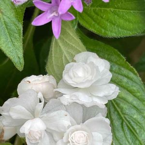 夏のお花の寄せ植え。 白と紫色のお花で💜🤍💚 ペチュニア💜🤍 八重咲きジニア🤍 ペンタス💜 八重咲きベゴニア🤍 コリウス💚 これから、モリモリ咲くのに、 詰め込み過ぎたかしら? 薄紫色のペンタスが隠れてます💦 後で、考えよう😅