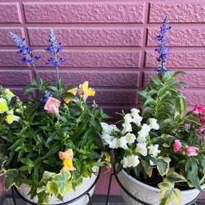 2つ合わせて800円ほどの寄せ植え🤭 お花は100円以下、アイビーだけ200円 (1つ買って、わけて使いました) お安いけど、しっかりした株です👍