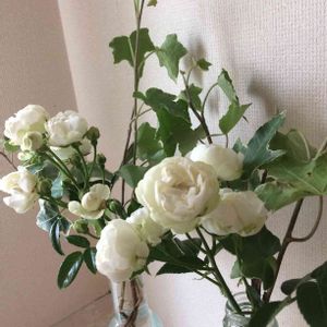 こんにちは(*^ω^*) こちらは梅雨入りしました☂️ 昨日カット✂️した薔薇 ポリアンサローズ ホワイトマザーズディ🌹 コロンとしたカップ咲き😍 次々と咲いてくれそう✨✨