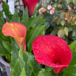 今日のお花 1️⃣2️⃣3️⃣カラー 4種類植えましたが3種の開花 一つは 球根が小さかったので 🌱も出ませんでした🥲 カラーの 和名は海芋(カイウ) または 和蘭海芋(オランダカイウ) 花言葉は 華麗なる美、 乙女のしなやかさ