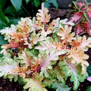 コリウスを2種2株買ってきて、花壇に植えました🎵 複雑な葉の色が綺麗です❣️😍
