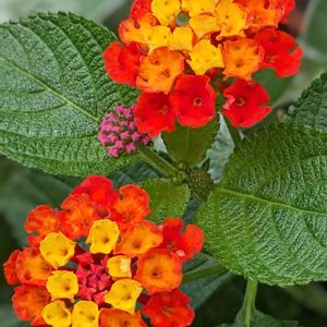 ランタナ❤️💛ブルーミファイレッド 咲き始めは黄色から赤へと変化して茎や🌿葉に細かい棘があり触るとチクチクします(>0<;)