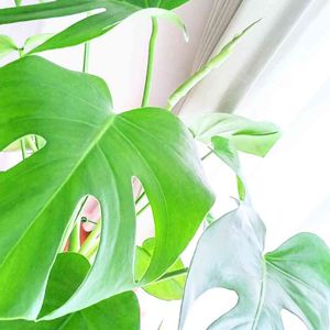 モンステラ新芽が開いてきたので、色々な角度から。しだいに、何かの顔っぽく見えてきて、面白くなってきてしまいました😊 葉っぱドリルももうすぐ見納めです♪