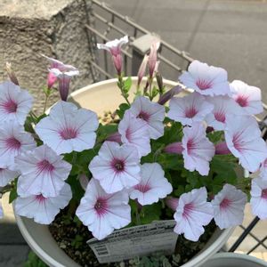 おはようございます☀ スーパーチュニアビスタミニクリスタル🌸 花がら摘みは大変だけど、小さい花がかわいいです😍 今日も良い一日になりますように✨