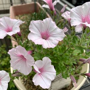 スーパーチュニアビスタミニ クリスタル 4/29に3回目の摘芯をしてからかなり咲いてきました🌸 梅雨対策で色々切り戻ししなきゃなぁと思いつつ、なかなか時間が取れず💦💦 今週末にできるかな~?