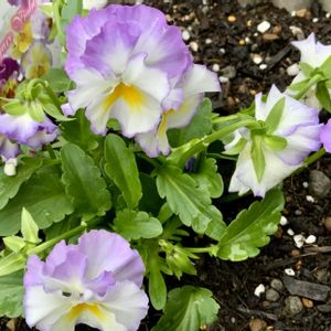 おはようございます♪(๑ᴖ◡ᴖ๑)♪♡ 今日の私の2枚目はフリル咲きパンジーさんですo(^▽^)o♡♡♡ 🏷️ 白い貴婦人✨ 🏷️ 白い水曜日♡ ◎ シエルブリエ(フリル咲きパンジー) 花日和が育種した、フリル咲きが特徴的なパンジーのことです。ボリュームのあるフリルと厚い花弁が魅力で、花持ちの良さと華やかな色合いが特徴です。耐寒性があり、冬から春にかけて咲き、切り花としても楽しめます。 ◉主な特徴 花姿:ボリュームのあるフリルと厚い花弁が特徴です。 花色:砂糖菓子のようなパステルカラーやアンティークカラーなど、多彩な色合いがあります。 花持ち:花弁が厚く丈夫なため、花持ちが良いです。 花持ち:花首がしっかりしており、暖かくなっても伸びにくいため、雨や風でも草姿が乱れにくいです。 花色の変化:蕾の時と咲いた後で色が変わったり、育つ環境によっても表情が変化したりします。 ◉育て方 置き場所:日当たりと風通しの良い場所を好みます。 水やり:鉢植えの場合は土が乾いたらたっぷりと、庭植えの場合は土の状態を見て行います。 肥料:開花中は次々と花を咲かせるため、週に1回液肥を与えるなど、適宜追肥を行います。 ◉お手入れ:咲き終わった花がらをこまめに摘み取ると、次の花が咲きやすくなります。 ◉注意点:冬場は株全体を寒風や霜から守るようにしましょう。