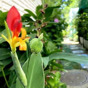 今日も超暑い🥵💦としか言葉が出ないです ニワトリ🐔の姿のダンドクの花が"コケコッコ〜"と叫んでます ニワトリ🐔の隣にはヒヨコ🐣みたいなのが現れてて可愛い〜💚 そして3枚目のように黒い種⚫︎⚫︎⚫︎が現れます🥰👍