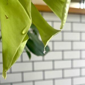 お久しぶりです 3日に右目の網膜前膜と白内障の手術を受けて5日が経ちました👁️ 網膜前膜の症状が手術をしてみたら予想より膜の癒着が強かったようで膜を取り除いたあと網膜を元の位置に戻してくっ付ける手助けをするエアーを注入しました! その為、術後3日間はずーっと下を向いていなければならず寝る時も顔を真下に向けてうつ伏せ寝😓 首は痛いし眠れないし顔を上げれないからテレビも見れない、飲み物もストローを使って下を向いたまま飲まないといけないという地獄の3日間でした😓 4日目にやっと横向きで寝て昼間も顔を上げて生活しても良いとokが出ました😮‍💨 でも、まだちゃんと見えてなくて目の前に黒い地平線のような物が見えていて上半分は見えて下半分は物の輪郭しか分からずチラチラと揺れているので眼帯で視野を遮断してないと気分が悪くなります なのでまだ車を運転することもまともに歩くこともできず家にこもってます リビングのモンステラの新葉も開きそうでなかなか開かない 見えそうでなかなか見えない私の目のようです! 早く葉も視野もパッと開け〜😆 pic② うつ伏せ寝用の枕を病院が貸してくれましたがこの枕に顔を埋めると鼻が布団に着いて息ができないのでベッドの足元に椅子を置いてベッドと椅子の間に隙間を作りそこに鼻がくるようにして寝たりしてました😭 それでも、やっぱりオデコは痛くなるし腰は痛くなるしで全く寝れなかったけど😂🤣 長文にお付き合い頂きありがとうございました😅 私の右目の闘病日記といつも励ましてくださる花友さんたちへのご報告です📔 紅葉はスッキリ見れたら良いなぁ🍁