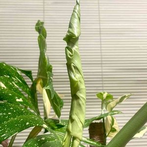 急に斑が入ったヒメモンステラのその後 新しいドリルが開いてきたので期待して見ると普通の葉っぱ💦 これから色が濃くなると斑が現れるかもしれないので様子をみます👍 それより先に出ていた小さい葉っぱ! これも実はうっすら斑が入ってたかも🤩 気がつかなかった🥶 斑〜斑〜言い過ぎですね🙏