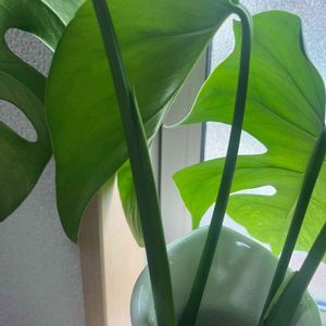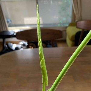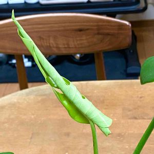 モンステラのドリルが朝はキュッと巻いていたのに、少しずつ開いてきました❗️ どんな葉っぱになるかな☺️ 楽しみです♡