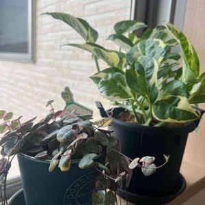 植物ニョキわさのいい季節ですねー🌱 株分けポトスエンジョイちゃんも、ハートカズラもすくすくいい調子。