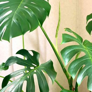 モンステラ。 今だけのライトグリーン。 ついに立派な切れ込みが🥲 向こうにドリルがもう一つ。 分けた3つの茎が順調に成長しているよう。葉が重そうなので、支柱を立てる。 さて、今日も元気に行ってきます🌱