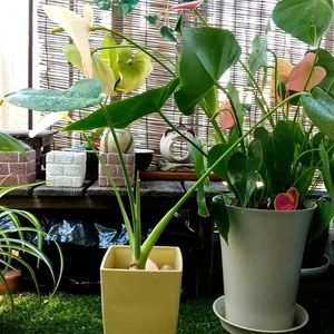 こんにちは‼︎☀️ 今日は休みやったんで、やっと朝から水やりする事が出来ました‼︎😍 すると、大きい方のモンステラの株から新しいドリルが右奥ぐらいに出て来てくれました‼︎🤗 どの角度から撮ったらカッコいいのか悩んだんですが、結果見にくくなってしまいすみません…🙇♂️ 次はどんなけ大きな葉っぱを開かせてくれるのか楽しみです‼︎☺️