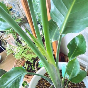 ストレリチアを日光浴させています。 水やりはしません。ストレリチア、オーガスタは乾燥上等です。 でもルンルンと嬉しそうな声が聞こえてきますね❣️(?!) 新芽がバリバリ出てきており、ある種の恐怖を感じています〜 もしかしてコイツ、モンステラよりモンスターなんじゃねえ?と。 なんですが、なかなか高さが出てくれません!バカデカくしたいのに! 葉っぱはモリモリとデカくなってきてるので急激に大きくなるんだろうなぁ。 高さは鉢含んで1mくらいです。 私めの身長を超えて欲しいんだけど?! 今年の5月に5枚の葉っぱをカットしてスッキリさせたのにもう5枚目が出てきてます。 元に戻ったね?!怖素晴らしい! どうやら昼間、太陽光などからエネルギーをチャージし、日が落ちそうな涼しくなる頃にギュギュっと伸びようとしてるみたいです。 ラッキーならば日没ごろになると、5分くらい時間をかけてパリパリ言いながらゆ〜っくりと葉っぱが動く様子も観察できます。これはマジ。 ストレリチアはパリパリ…って喋るよ!! (開く際に葉が擦れる音です)一応。 しかしこの子はストレリチア?オーガスタ?君はなんていう名前なの? 最近のショップは平気で違う名前付けて売ってたりするので調べてみてもようわからんですね。 1鉢に3株ものストレリチアが植わってるのも気になっております。 隣同士が邪魔で大きくならんだろう。と。 あまりにも巨大化しちゃうとマァ困るんだけど 来年は一株だけ別に植えて、1株巨大化でも目指そうかね🤨🤔 あー可愛い植物はやれ飯くれだの構ってくれだのとうるさくなくていいよね!