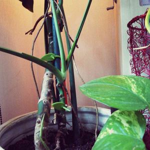 title 下の方から新芽発見。 1番の古株 モンステラおばさん。