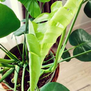 我が家に来て 9ヶ月目のモンステラ 次々と葉が生まれてます🌱 12個目のドリルが開いてきたところのpicです😃