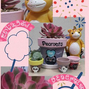 おはようございます🍀 今日は、厳しい暑さになる予報で、今朝も室内でも、28℃、湿度70%あり、少し動くと汗が流れます💦 ずっと欲しかった、アエオニューム ピンクウィッチ💕 ようやく、お迎え出来ました🥰先日45さんの販売でGETし、しばらく飾ってあった、300個記念のpeanyats鉢💖 この子にIN🤗 最近あちこちで出没している「ブースカくん」と、大切な花友さんへエールを送ります🍀 穏やかな休日を過ごせますように🌿