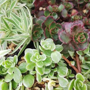 セダム系たくさん買いました。 とりあえず赤玉土を敷いたプランターにポットのまま並べたところ。