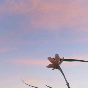 6月の始まり 朝焼け雲と 姫桧扇の花色 うっすら桃色です