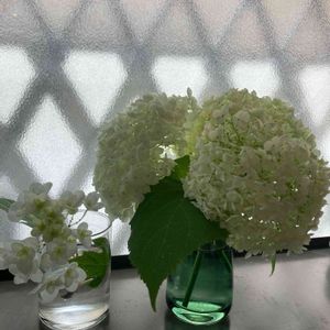 アナベルと小さめ柏葉紫陽花^ ^ 白い紫陽花って可愛い💕