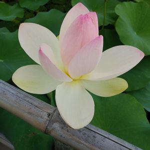 今日のお花 ハス 舞妃蓮 クリーム色でほのかなピンク色の花弁がとても優美でした✨撮影7/1 💡阪本祐二氏によって昭和41年アメリカの黄花ハス王子蓮と日本の大賀蓮を交配させたハスで昭和43年に当時の皇太子夫妻に献上されたそうです。 昭和44年、花の開閉が女性の舞姿のように見えることから阪本祐二氏が「舞妃蓮」と命名。 上皇后美智子様の美しい容姿が美事に映し出されているハス姿だと思います👸✨