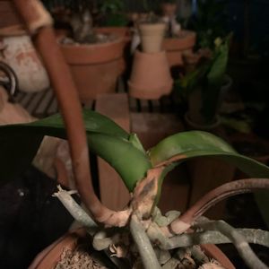 こちらも。 以下同文です。 2鉢あるうちのひとつです。(胡蝶蘭B) 3日間留守にしていました。 帰ってきたら葉っぱも枯れて、今回もダメだろうなと考えていました。 帰宅した夜はスルーして、今朝細部を確認していたら、動きが((((;゚Д゚))))))) 少し葉が出てきてますよね? ここ数日の高音多湿がいいんでしょうね(^^)