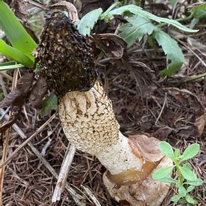 今日も姉と森を探索🌲 これは…マクキヌガサタケかなぁ? 残念ながらレースのヒラヒラは終わっちゃったみたい💦 グロテスクだけど可食だそうです🍄