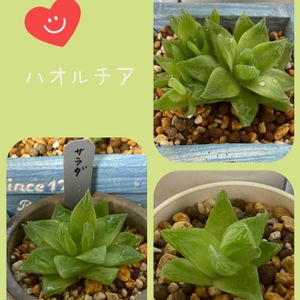 ハオルチア サラダ お初にお迎えしました🍀 主人の趣味の釣りにお付き合い後立ち寄った道の駅で出会いました。 タグにはサラダとしかなかったのですが、調べたらサラダ菜という品種があるみたい。それなのかしら❓ ドキドキしながら植え替えていたら3つに分かれてしまったのでそれぞれ植え付けてみました。 鉢底石の代わりにアクアセルキューブを使っています。 いつも「美味しそうだなぁ🍴」と思いながら見ていたハオルチア。 上手く育てられるかな。頑張ろう୧⃛(๑⃙⃘◡̈︎๑⃙⃘)୨⃛