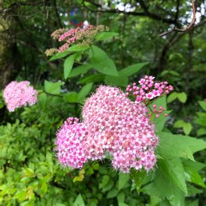 日光霧降ノ滝遊歩道に咲いていたシモツケ、下界で咲いているシモツケとピンク色濃さや元気の違いを感じました。😊👍🎶📸