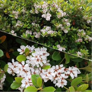 同じバラ科なので、ローズガーデン内に植えられたのでしょうか🤔 🌼*・シャリンバイ(車輪梅)・*🌼 バラ科 シャリンバイ属の常緑低木 和名は枝の分岐する様子が(葉の配列の様子とも)車輪のスポークのようで花が梅に似ることから😂👍 葉は楕円形で厚く、深緑色でつやがある。 縁には浅い鋸歯が出ることもある。 多くの場合、枝先に葉が集中する傾向があり、単葉で車輪状に互生する。 4-6月に白または淡紅色の5弁の花(両性花)をつける。 10-11月に直径1cm程の球形のナシ状果の果実は黒紫色に熟す。 *Wiki参照*