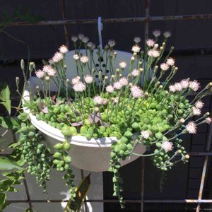 グリーンネックレスさんに花が咲きまくってました! 枯れそうなのとかは早めに摘み取ってるんですが、、蕾を次から次へと付けて終わりが見えない…(^^;; 枯れてしまった状態で貰って 思い切って全部禿げさせて(根元付近まで短く切り戻して)この状態まで復活したいい子です(^-^) 引越した新しい家のベランダは気に入ったかなぁ